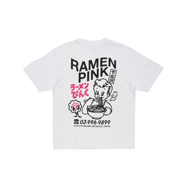 La T-shirt Ramen Pink ha una vestibilità oversize con collo a costine, realizzata in morbido jersey singolo. Presenta stampe sul petto e sulla schiena.